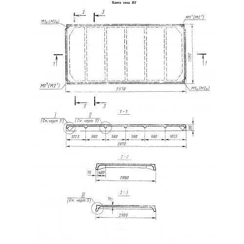 ПГ 1  Плиты железобетонные ребристые  (без проема в полке) предварительно напряженные для покрытий производственных зданий ГОСТ 22701-77.